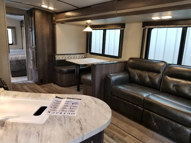 Below are a few photos I took of the 2018 Keystone Outback 324CG travel trailer we found that meets every must have on our list and even has a couple wants from our list. With this one, I can have my dedicated office space with storage room for all my show gear and with a ramp right in to the space since this is a toy hauler.